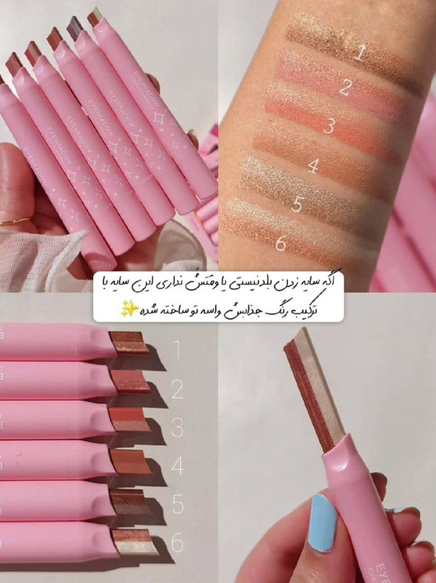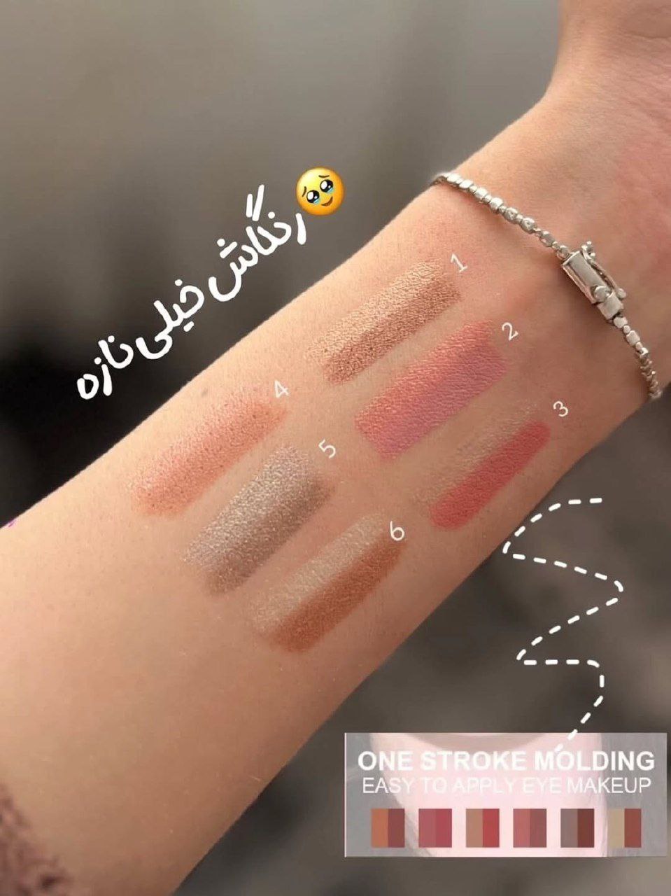 #نظر_خودم اونقدر بافتش نرمه که با یک بار کشیدن پیگمنت فوقالعاده به جا میزاره! هر کدوم از سایهها ترکیبی از مات و شاین هستن که وقتی پشت پلک میکشین انگار 5 تا 7 میلیون هزینه کردین که همچین میکاپی داشته باشین!! 6 رنگ بندی شیک و جذاب داره! همین که پشت پلک بکشید و با براش فید کنید ترکیب بینظیری تحویل میگیرید! قشنگ 24 ساعت رو ماندگاری داره و اصلا رنگهاش با عرق کردن و... نمیماسه!! یکجوری محشره که حد نداره!😌💕