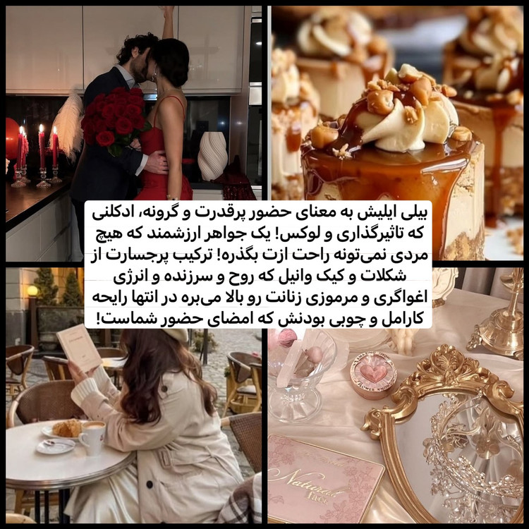 رایحهاش با شکلات شروع میشه و کمی چوبی که سبکش سمت شکوه و زنانگی میره و هماهنگی خاصی با وایب ثروتمندان داره! در انتها ترکیب خارقالعاده کارامل و کمی تندی که اون رو موندگار و بیاد ماندنی میکنه!🌸💓