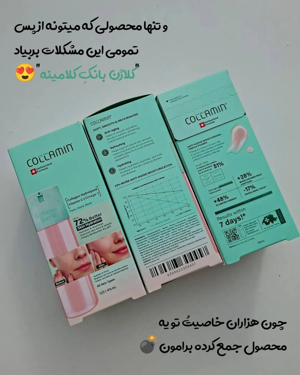 #نظر_خودم الان من تو سنی هستم که کلاژن پوستم بشدت کم شده! من نزدیک 20 روزه دارم استفاده میکنم! بافت خیلی سبکی و زودجذبی داره و قشنگ سفت شدن پوستم رو حس میکنم! بیس چربی نداره! سرشار از کلاژن هیدرولیز شده یا به اصطلاح ریز مولکول شده است که راحت جذب پوست میشه و کلاژن داخل پوست رو تحریک میکنه! خوبی که داره بازدهیش خیلی سریع و قشنگ خطوط رو راحت از بین میبره! واسی کسای که مثل من از بوتاکس وحشت دارن یک راه ایمن!😂🤦🏻♀️آبرسانیش خیلی زیاده قشنگ پوست شفاف و روشن میشه بخصوص اگه جای جوش و منافذ دارید رفع میشه! من شخصا خیلی ازش راضی بودم!😌✅