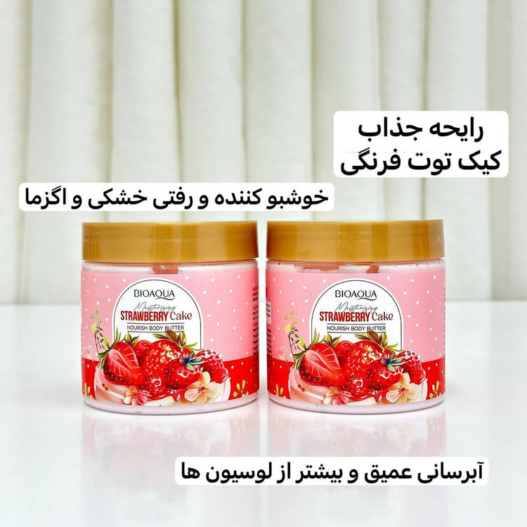 کره بدن وارداتی کیک توت فرنگی Biuaqua