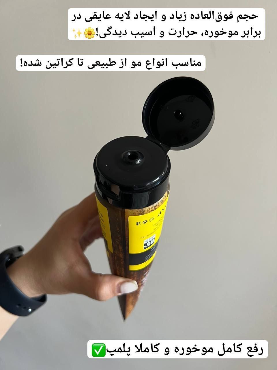 #نظر_خودم هر چی از خفن بودن این ماسک مو بعد حموم بگم واقعا کم گفتم! بینظیره! تنها کرم موی که همه نوع موی میتونن استفاده کنن! من جنس موهام زخیم و حالت داره خیلی دوست داشتم اون حالت نیمه فرش بعد مدتها لخت کردن دوباره حفظ بشه ولی خوب پُر موخوره و آسیب بود! اگه اشتباه نکنم الان هفته سومی که دارم استفادهاش میکنم! قشنگ میبینم که موهام جون گرفته چون بشدت براق شده! موقع حموم دیگه گره نمیخوره و شونه کردنش اشکم و در نمیاره! میخواستم سر موخوره هام 3 سانت از موهام و بزنم ولی الان کنسل شده! حجمش خیلی زیاد و غلیظ قشنگ 6 ماه میمونه! بوی خوبی داره! بنظرم تنها کرم موی که مناسب موی لخت و فر شدیدا