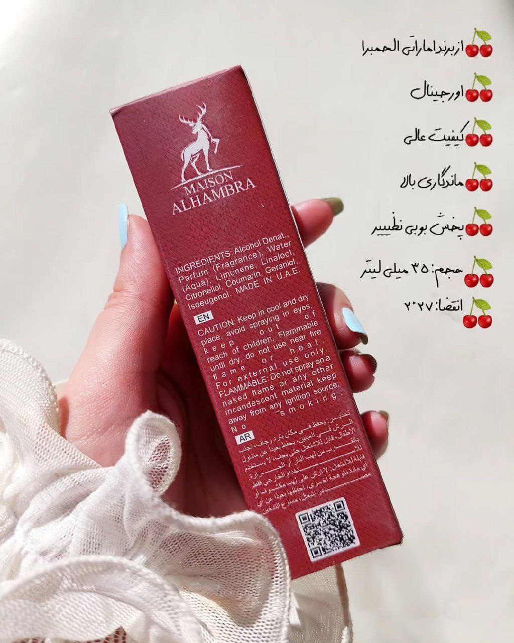 #نظر_خودم فقط یک ادکلن باز حرفهای میدونه که گیراترین ادکلنها ساخت اماراتن!! تنها برند ادکلنی که حاضرم هزاران بار بخرمش! چون حسی که به مخاطب انتقال میدن ناخودآگاه وادارش میکنن بهتون احترام بزاره و شما رو چندین لول بالاتره ببینن!مدلهای که براتون موجود کردم تا 87 درصد به ادکلنهای سایز بزرگشون شباهت دارن پخش بوش فوقالعاده است و ماندگاریش بالای 12 ساعته!جوری که ازش برای خودم دوتا برداشتم! متاسفانه الحمبرا برندی که خیلی نمونه بیکیفیت داره ولی من این مدل رو #تضمین کیفیت میکنم! نگران رایحهها نباشید چون سلیقم تو انتخاب ادکلن همیشه حرف اول رو میزنه!